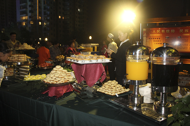 賞月會現(xiàn)場,遼寧金海集團為廣大業(yè)主居民準備了精彩的節(jié)目,各式美味月餅、新鮮水果與特色飲料,社區(qū)居民們陶醉在良辰美景與精致美食中。共話家常,同續(xù)鄰里情。