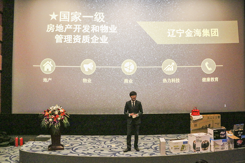 2017年1月7日上午,遼寧金海集團在金海影院2號影廳舉辦“金海社區生活服務平臺‘利家’產品發布會暨2017年業主答謝拍賣會。