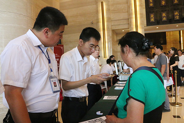 業主們在現場辦理盛京銀行卡后,就能免費領取金海大廈電影票。通過工作人員的講解下載利家平臺APP并綁定銀行卡,再利用利家平臺APP現場繳納物業費,憑繳費截圖到物業處開具收據。