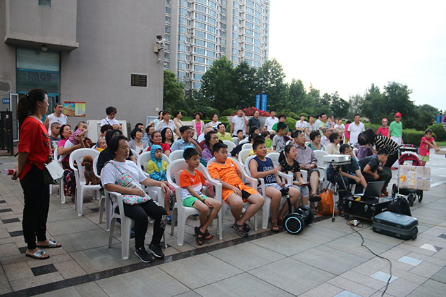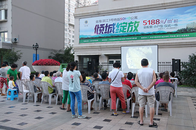 傍晚,習習涼風一陣一陣吹來,驅散了夏日的燥熱。在金海江畔花園小區內,早早就坐滿了前來觀看電影的金海業主,很多居民甚至是全家出動。業主們熱情高漲,納涼觀影兩不誤,好不愜意。社區電影的舉辦豐富了居民的精神文化生活,增進了鄰里關系。