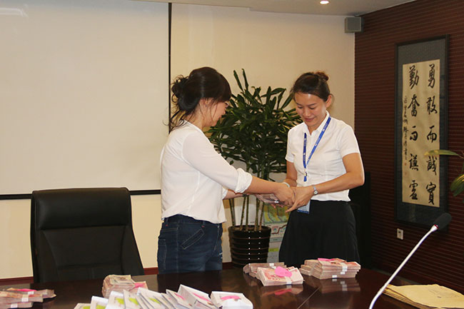 9月8日下午,經(jīng)營中心宣布召開銷售會(huì)議,會(huì)議由集團(tuán)常務(wù)副總經(jīng)理莫丹主持,濱江3號、溫泉小鎮(zhèn)、金海瀾山全體銷售人員參與會(huì)議,就在大家準(zhǔn)備認(rèn)真做好記錄的時(shí)候,呈現(xiàn)在大家面前的是幾十萬元的現(xiàn)金。