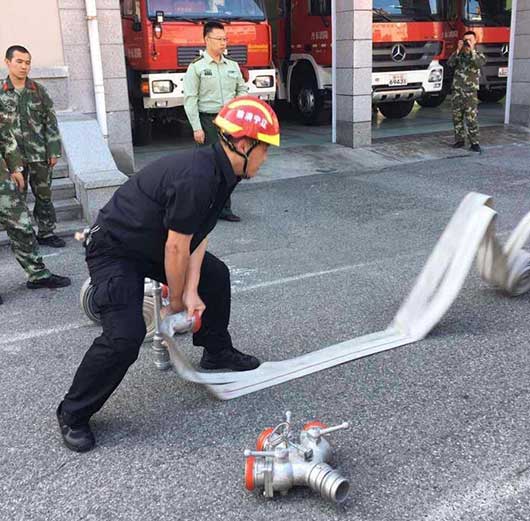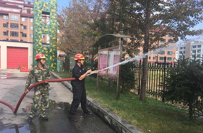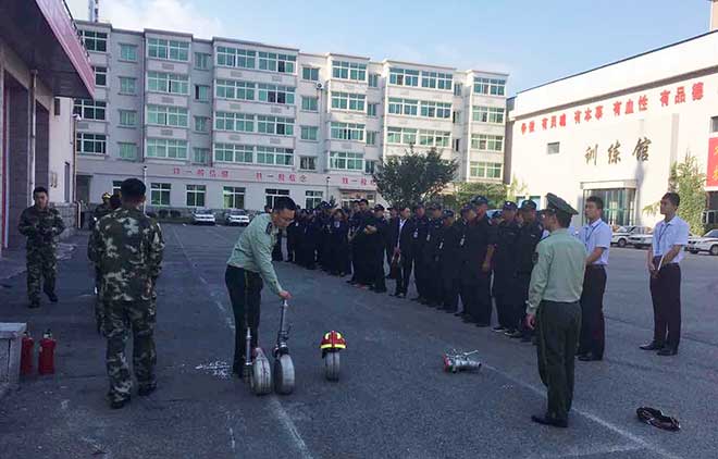9月21日上午,在元寶區(qū)消防局院內,高壓水槍、便攜式滅火器擺成一排,整齊的隊伍面前,元寶區(qū)消防局的官兵,正在為金海物業(yè)總公司的員工講解消防專業(yè)知識。這是金海物業(yè)總公司為進一步提高員工消防安全意識,增強突發(fā)事件應變能力,熟練掌握消防安全技能,聯(lián)合元寶區(qū)消防局舉行的消防演練與培訓。物業(yè)總公司的保安員、消防監(jiān)控員共50余人參加了培訓。