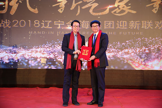 遼寧金海集團領導與2017年二等獎獲得者合影