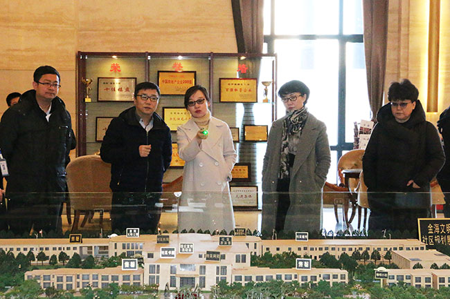 金海集團(tuán)財(cái)務(wù)總監(jiān)于妍妍、營(yíng)銷副總監(jiān)杜春臻、物業(yè)公司總經(jīng)理蘇瑩等領(lǐng)導(dǎo)陪同參觀。