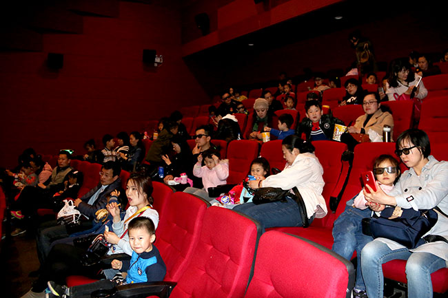 參觀結(jié)束后,家長(zhǎng)們帶著孩子一起觀看電影,高端影音設(shè)備與爆笑可愛(ài)的動(dòng)畫(huà)形象吸引著孩子們的目光,家長(zhǎng)們和孩子們一起享受親子時(shí)光。