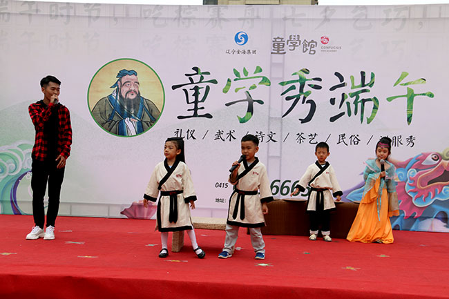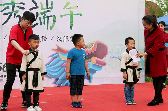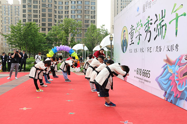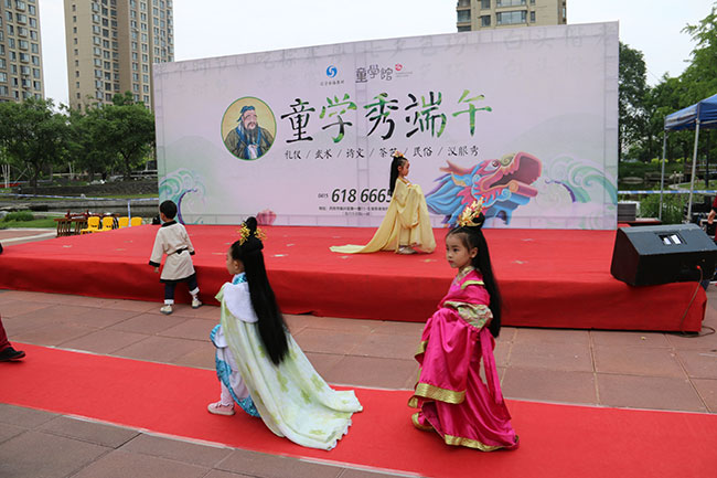 小朋友除了體驗到端午節(jié)的傳統(tǒng)習俗之外,還會欣賞到“童學拳”“茶道”“聲律啟蒙”等表演,并有機會親身體驗“漢服”的美感,參與舞臺走秀。