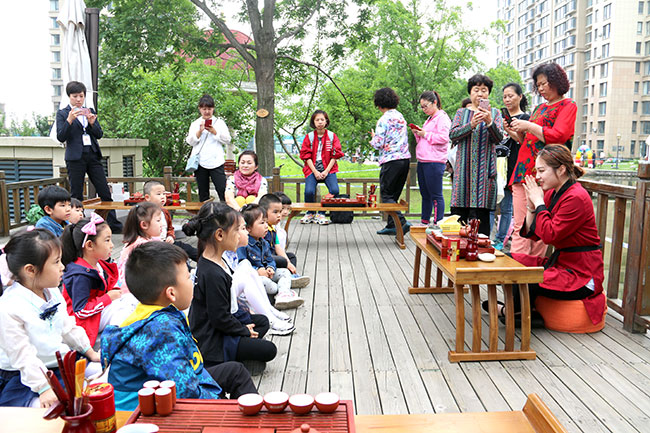 活動伊始,小朋友們參加了茶藝課體驗,老師會通過實物,向小朋友講解茶道的精髓。一個小時的過程中,小茶藝師們不僅領略了茶藝師的高超技藝,還親身體驗了傳統(tǒng)茶道的泡茶過程。