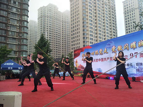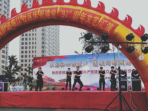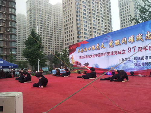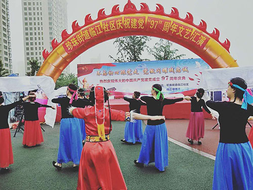 為慶祝偉大的中國共產黨建黨97周年,6月27日晚,在美麗的鴨綠江畔,丹東市臨江社區聯合轄區物業及居民隆重舉辦“建黨97周年慶典晚會”,金海物業應邀參加了此次活動并在活動中獻上精彩的表演。當晚,雖然下起了瀝瀝細雨,但前來觀看的市民卻絡繹不絕,現場氣氛十分熱烈。演出開始前,濱江3號全民多彩社團文藝社的業主們為現場的所有觀眾表演了一段精彩的藏族舞蹈《心上的羅加》,讓人眼前一亮,贏得了臺下陣陣掌聲。隨之演出拉開大幕,在精彩紛呈的表演中,濱江3號管理部的管家和保安團隊也登臺一展風姿,表演了舞蹈《光榮的使命》,臺上的她們舞姿優美,英姿颯爽,可謂是亦柔亦剛,給江城的父老相親和外地的游客展現了金海物業人的多樣風采,大家掌聲雷動,讓人印象深刻。