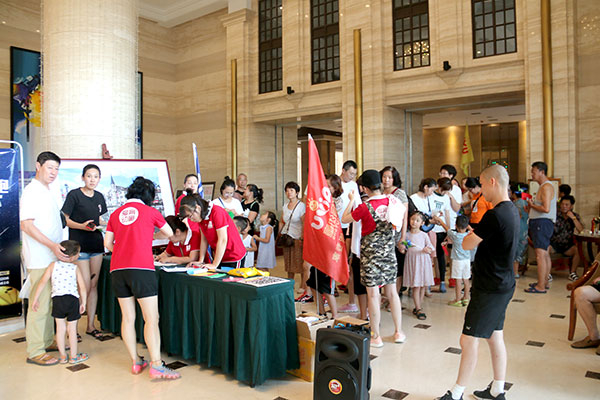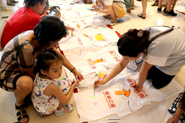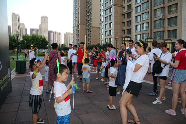 經營中心置業顧問首先為大家分享了濱江3號項目及近期清盤政策。主持人宣布活動流程,參與者以家庭為單位,根據自己的需求用熒光顏料、熒光筆、T恤等材料,隨性裝扮出不一樣的“戰袍”。