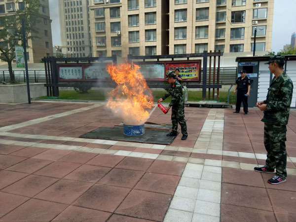 培訓結束后,杜教官帶領大家進行了實地滅火及逃生演習實踐,親手指導業主如何正確使用滅火器滅火,一旦發生火災如何指揮小區業主樓道安全逃生等。