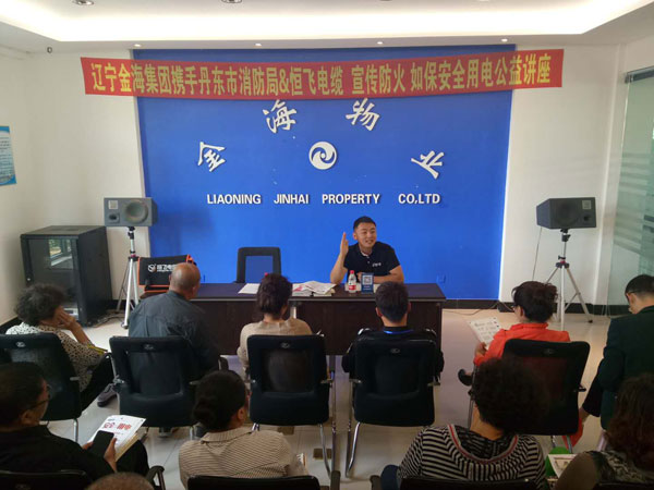 9月15日上午,物業公司攜手丹東市消防局及恒飛電纜在濱江3號物業會議室進行消防、用電安全知識講座,向物業各轄區業主代表普及消防、用電安全等常識。