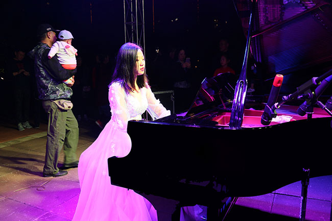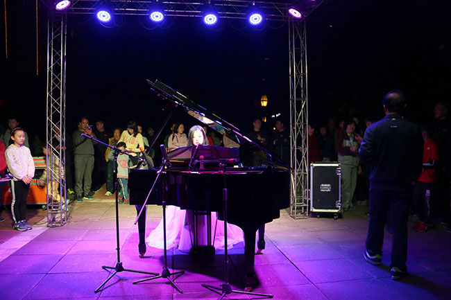 紅花廣場(chǎng)旁,鋼琴演奏。洋洋盈耳,馨心淡雅。