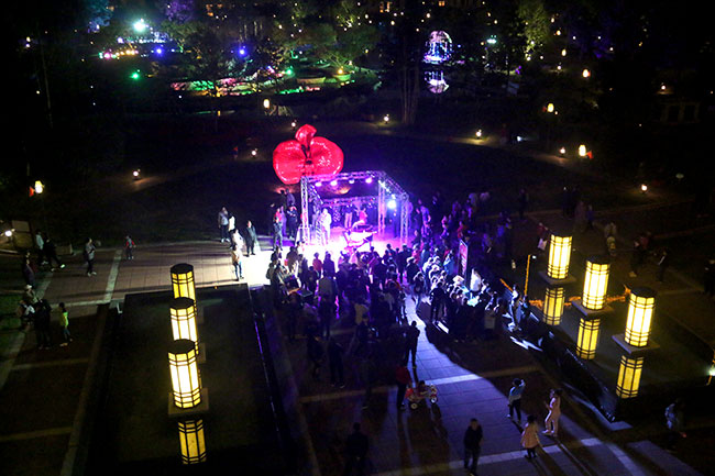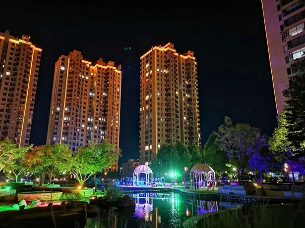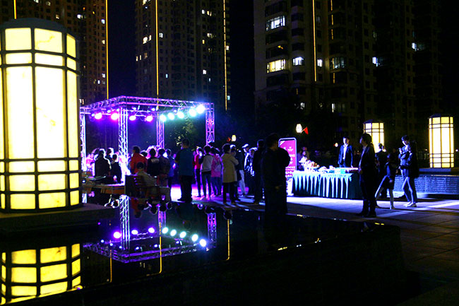 19:30,夜幕降臨,明月高掛,月圓如鏡,月色灑滿大地,美麗的濱江3號(hào)園區(qū)里,美妙的音樂聲響起,流淌在浩大而優(yōu)美的園區(qū)。
