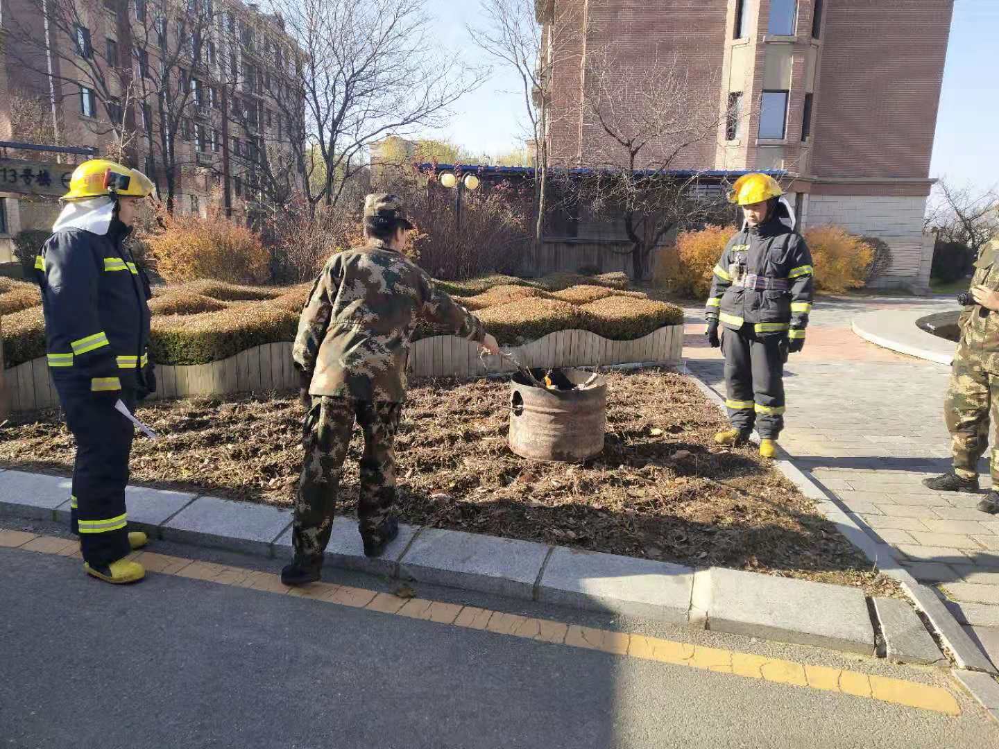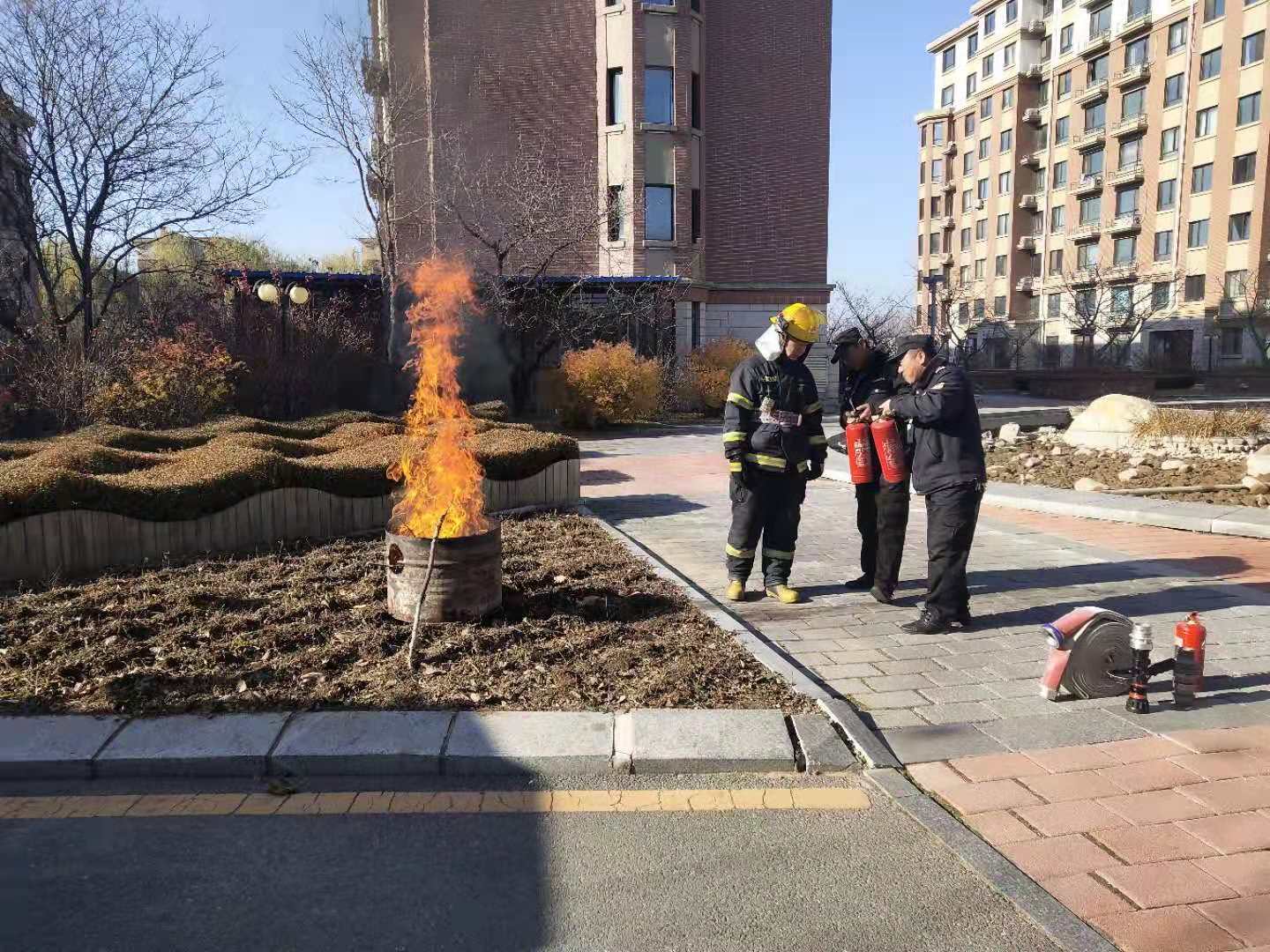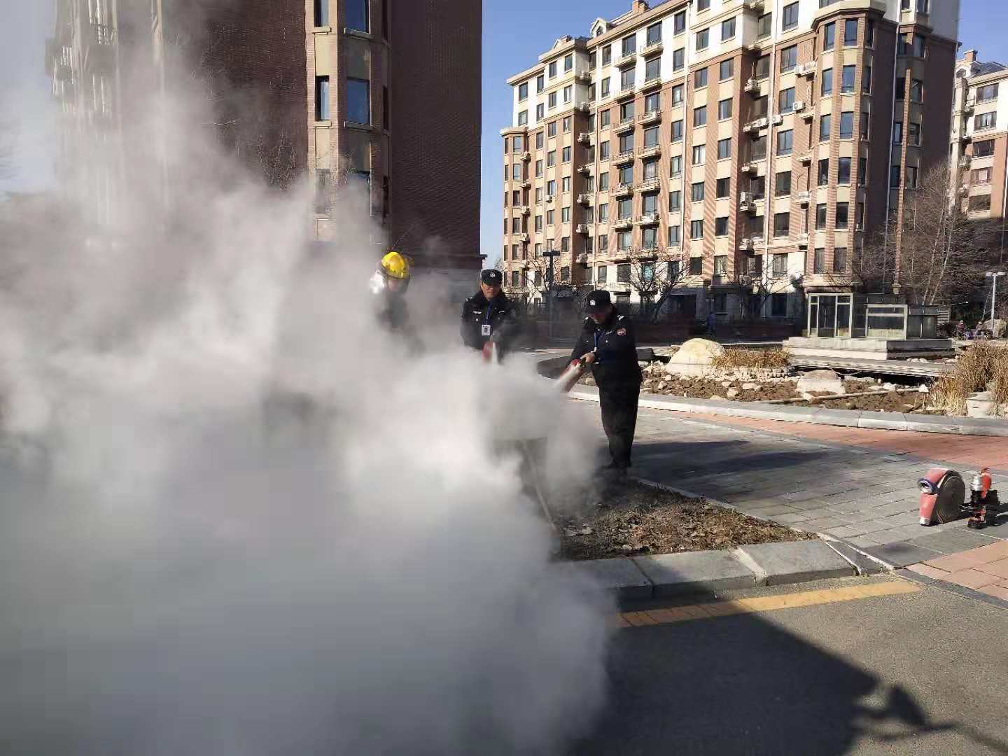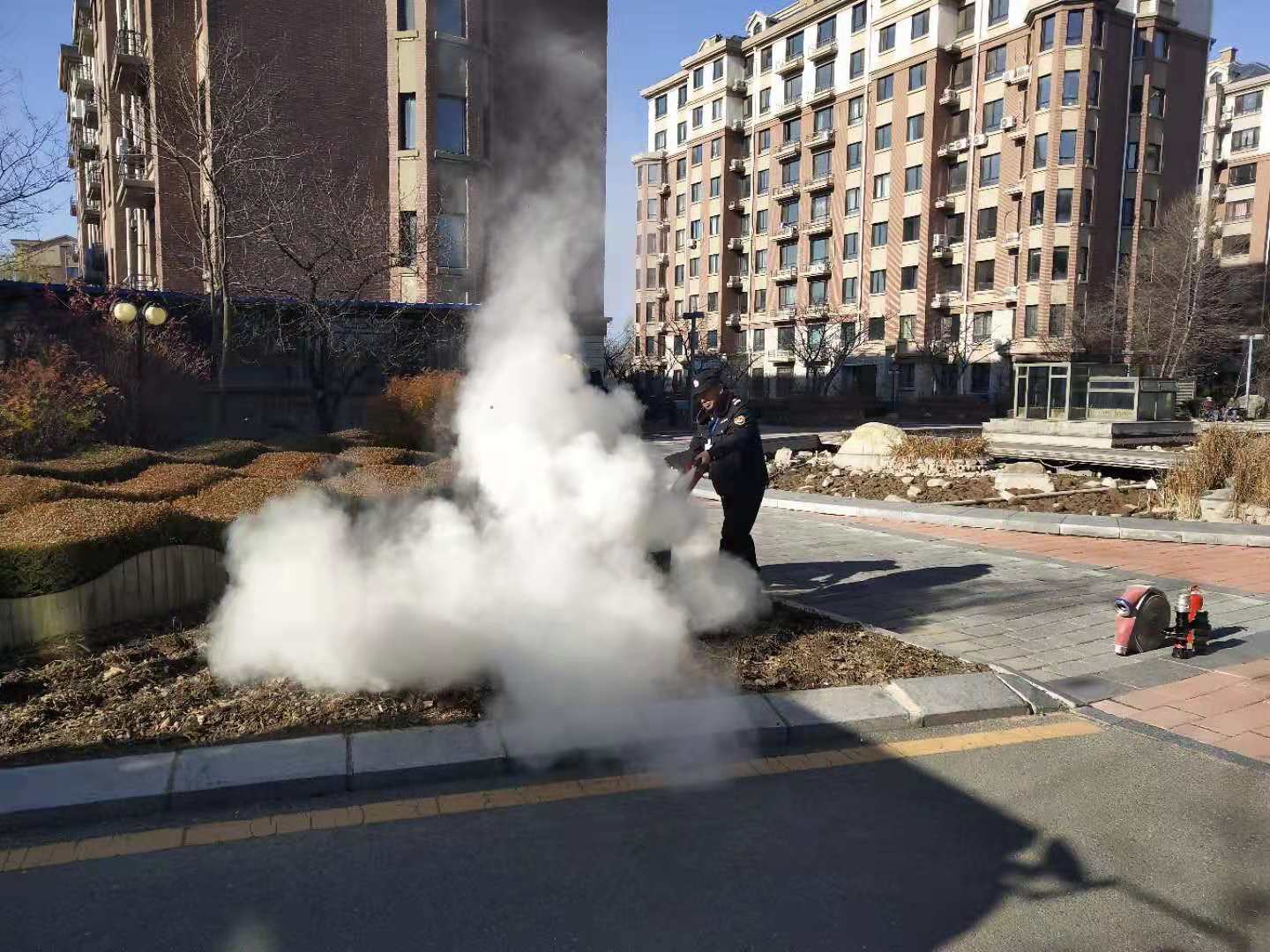 繼11月12日江畔花園消防知識培訓(xùn)后,14日上午物業(yè)公司又組織溫泉小鎮(zhèn)管理部進行消防培訓(xùn)。特聘請振安區(qū)五龍背消防中隊,在園區(qū)中央噴泉空地,開展消防培訓(xùn)及消防演練。