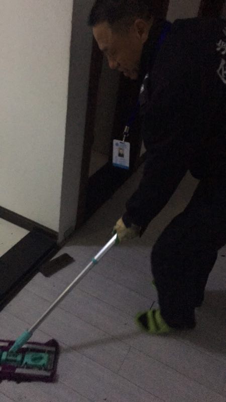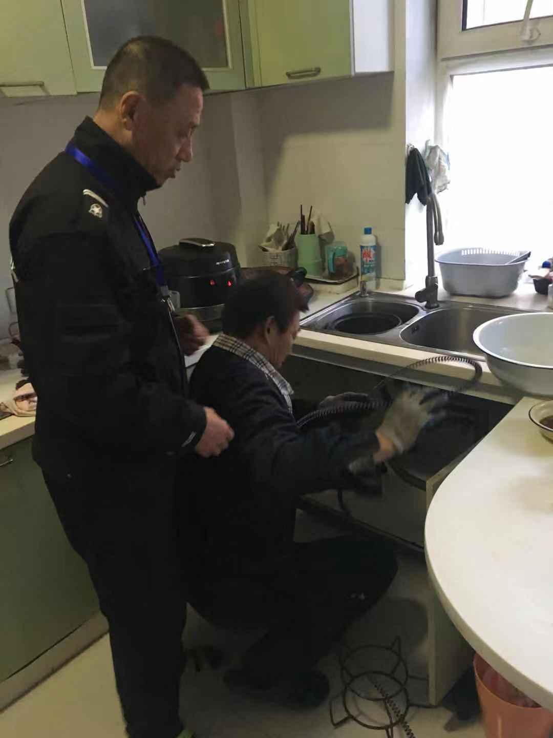 物業(yè)管理部小馬、王師傅、呂師傅迅速趕到家里,在查看情況之后,小馬同志看透我們的心思,安慰我們說:“你們是老人,打掃有困難,我們來幫忙。”說著就帶頭投入疏通下水的工作中,他們有的擦,有的拖,忙得“不亦樂乎”。