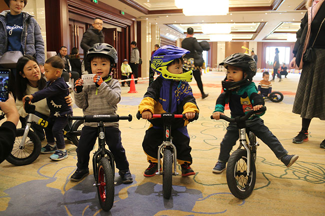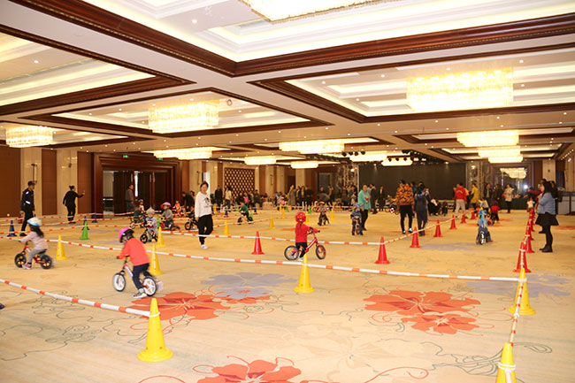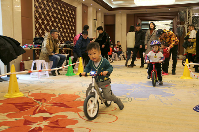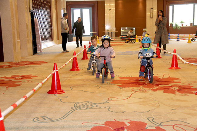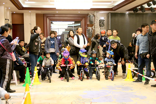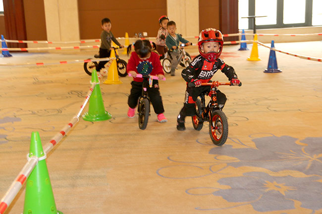比賽開始了,1-5歲的小朋友們在比賽中一顯身手,現(xiàn)場有專業(yè)教練指導(dǎo)寶寶們體驗騎行。寶寶們一點都不膽怯,前仆后繼,很快熟悉了滑步車的技巧,飛快地通過一個個彎道。現(xiàn)場氣氛非凡,圍觀的家長們也為小朋友們加油。