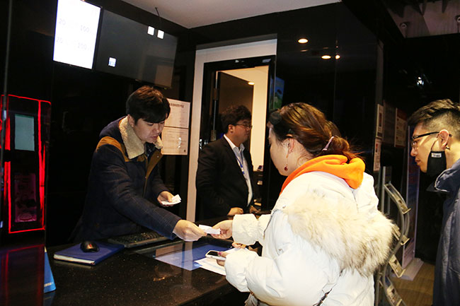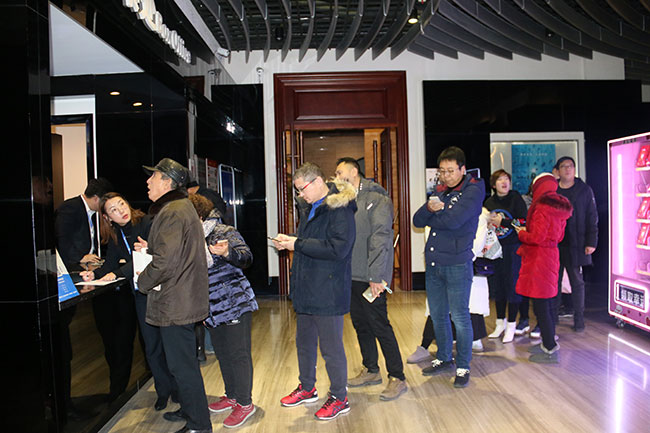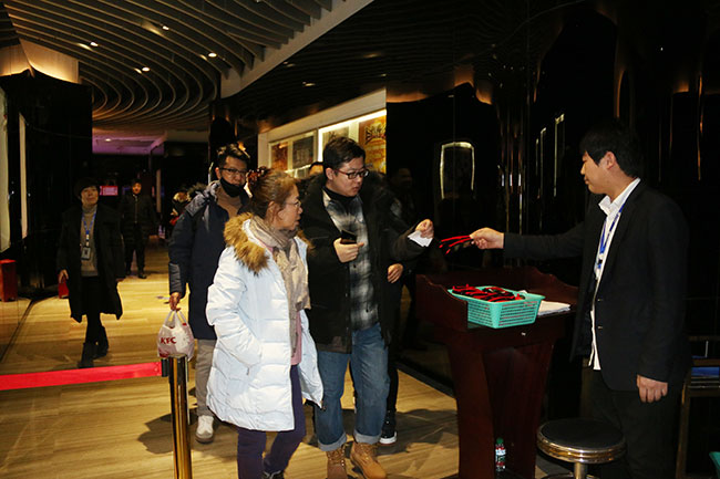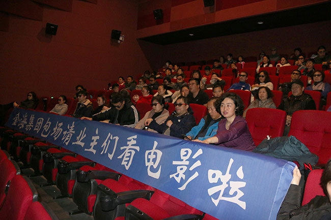 觀影入場時(shí),工作人員早早來到現(xiàn)場接待業(yè)主領(lǐng)票、引導(dǎo)入座……。