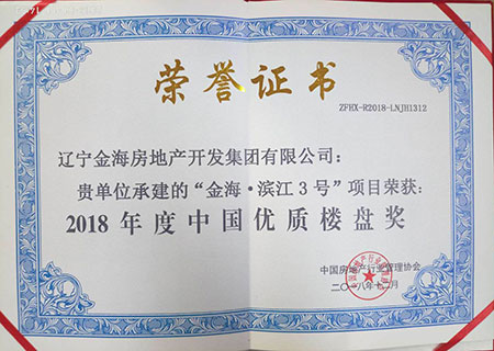新年伊始,捷報傳來,由中國房地產(chǎn)行業(yè)管理協(xié)會于2018年12月舉辦的2018年度中國房地產(chǎn)行業(yè)“優(yōu)質(zhì)樓盤”評選活動揭曉,遼寧金海集團開發(fā)建設的金海·濱江3號參加評選,一舉奪得了“2018年中國優(yōu)質(zhì)樓盤獎”。這是繼金海·濱江3號獲得丹東市“銀杏杯”優(yōu)秀樓盤獎、優(yōu)秀園林綠化工程獎之后,在中國房地產(chǎn)行業(yè)“優(yōu)質(zhì)樓盤”評選中首次獲得的殊榮。
