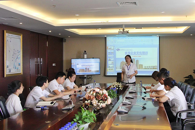 為加強大廈的企業文化建設,使“以人為本、點面結合、引導消費、追求卓越”的金海文化精髓更加深入員工人心,7月19日下午,金海大廈在十七樓會議室舉辦了企業文化專題培訓活動,大廈總經理遲慧慧帶領大廈綜合部,物業部以及各經營窗口負責人參加了培訓活動。