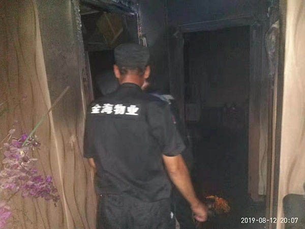 8月12日傍晚18:05分,國門灣新世紀佳園B區保安班長孔慶峰在園區巡視時,突然發現20號樓2201戶的臥室窗有濃煙冒出。孔班長立即跑上樓查看,敲門許久無人應答。在接到孔班長的報告后,管理部人員攜帶滅火器趕到現場,經理助理靳忠立即撥打119報警并同時也聯系業主,但多次撥打業主電話未果,隨后將情況通報了國門灣公安派出所。物業公司對火情的快速反應,讓業主十分感動,他們表示,如果不是金海的物業,就有可能釀成更嚴重的后果。
