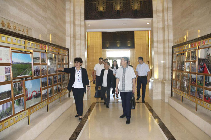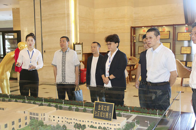 蘇總向夏總、明董一行介紹了金海集團在房地產開發及企業文化建設等方面的經營成果,濱江3號項目的區位資源、景觀優勢、建筑品質等,陪同貴賓們參觀了濱江3號園區、樣板間、電影院、游泳館、社區食堂和金海熙康體檢中心等配套設施。