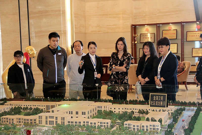遼寧金海集團總經理蘇瑩女士首先對高蕓迪(Justine Colognesi)參贊一行的來訪表示熱烈歡迎,并陪同參觀了濱江3號沙盤、百米長廊、社區書屋、園林綠化、園區雕塑等景觀,隨后在坐落于濱江3號的中比當代藝術駐留中心舉行了廣泛而深入的文化藝術交流。
