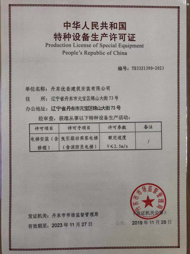 喜訊:金海電梯公司取得特種設備生產許可證并全面運營