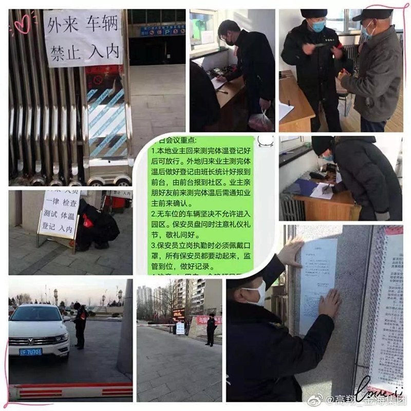 從領導到一線,所有金海物業管理人員正常上崗,調度部署,購買發放消毒防疫物資,貼通知,協調解決客戶投訴,第一時間幫助有困難的人,還有做好宣傳動員!