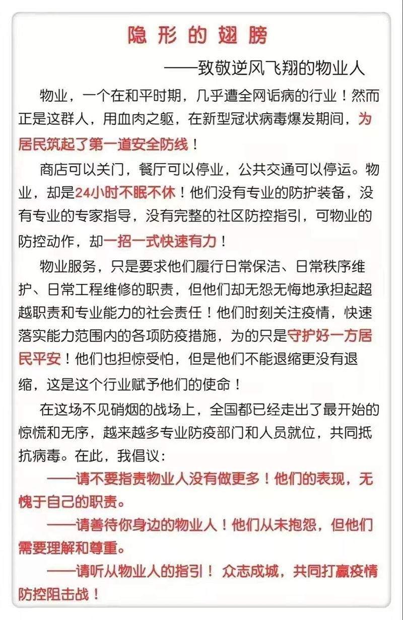 也向所有在這個特殊時期,奮戰在物業崗位上的工作人員們,致以深深的敬意!