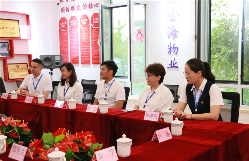 為慶祝中國共產黨成立100周年,6月30日上午,黨建引領商會規范化建設參觀交流活動在金海濱江3號隆重舉行。遼寧金海集團副董事長、總經理賈本鑫,遼寧金海集團辦公室主任李秀悅,遼寧金海物業總經理蘇瑩及金海傳媒總經理姜俊鵬等人熱情接待了丹東市工商聯主席張利紅一行并陪同參觀。