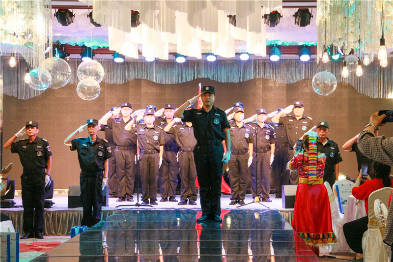 表演嘉賓多才多藝,用不同的藝術形式展現自己的風采,合唱、舞蹈等節目在舞臺上大放光彩。金海物業秩序維護部的成員,他們都是退伍軍人,他們不善言語,在這個特殊的日子用歌聲表達對中國共產黨的熱愛祝福。