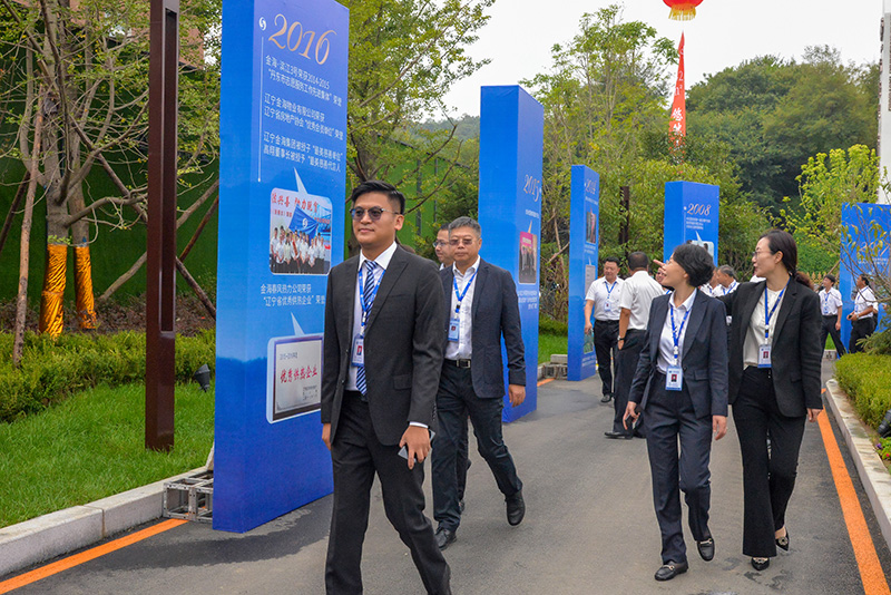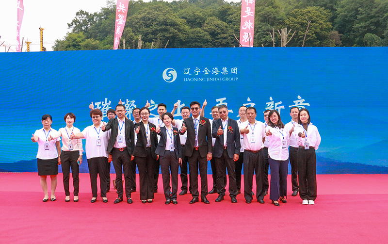 遼寧金海集團副董事長兼總經理賈本鑫、常務副總經理李小琳、副總經理劉中、總會計師于妍妍承載著所有人的美好期待和祝福共同啟動金海·桃源里服務銷售中心!