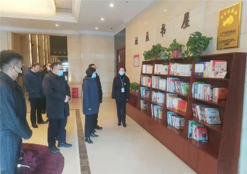 遲磊書記一行先后參觀了金海影院、百米長廊、社區書屋等場所,對金海利他精神及紅色物業工作給予好評。
