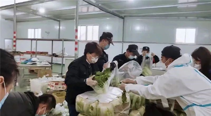 時間緊任務重,暖心計劃一經推出,各項目人員積極響應,迅速成立“蔬菜包愛心小分隊”,由于涉及園區眾多,人手不足,金海集團副董事長、總經理賈本鑫帶領集團高管領導及同事紛紛報名志愿者,投入到一線工作中。歷經40多個小時,完成了近15噸蔬菜擇取、稱重、分包、搬運、配送,4月27日-28日累計發放8個住宅小區,惠及1800余戶業主。