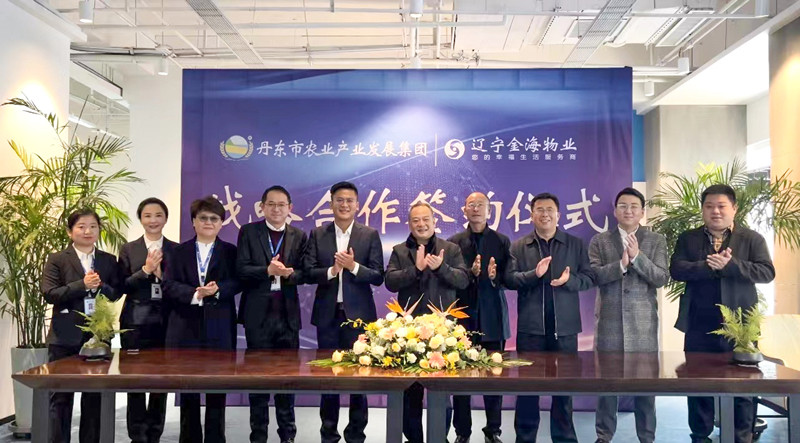 儀式上,丹東市農業集團董事長潘高峰和金海物業公司總經理蘇瑩分別代表丹東市農業產業發展集團和遼寧金海物業有限公司簽訂了戰略合作協議。